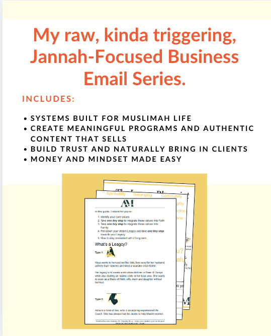 Whether you are an Entrepreneur, high achiever, homemaker or corporate employee. You want to be a better Muslim, mom while leaving a lasting legacy.