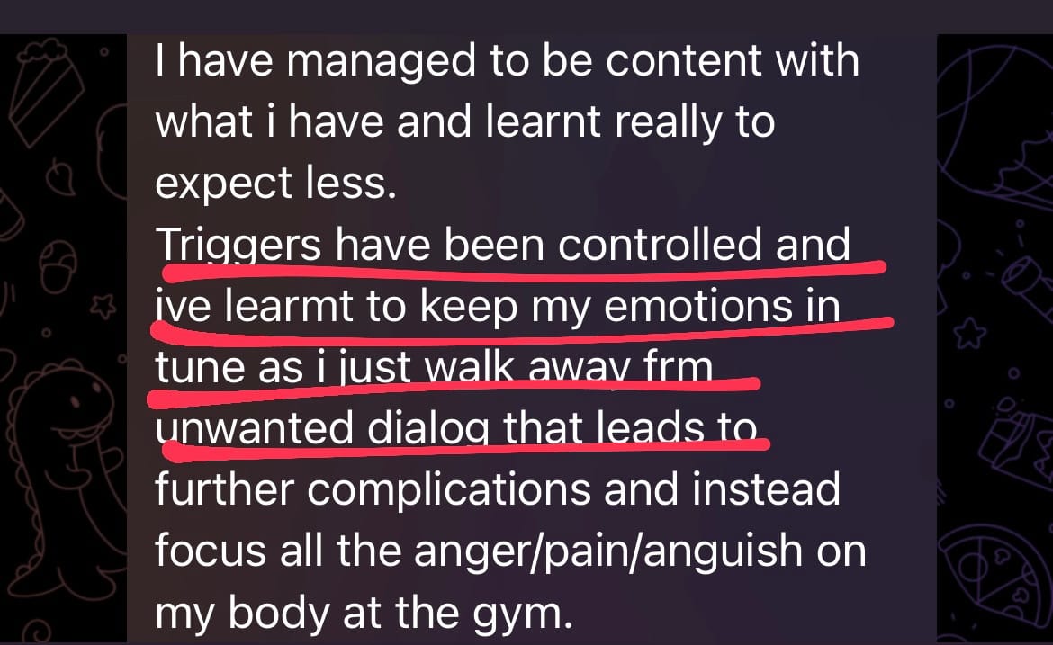 Client M was able to ditch negative thoughts and habits and organise them into clear Faith-Family-Self buckets